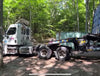 A 40ft container is delivered on a semi with a 40ft tilt-deck trailer and requires a minimum of 120 ft (36.6 m) of straight-line clearance.